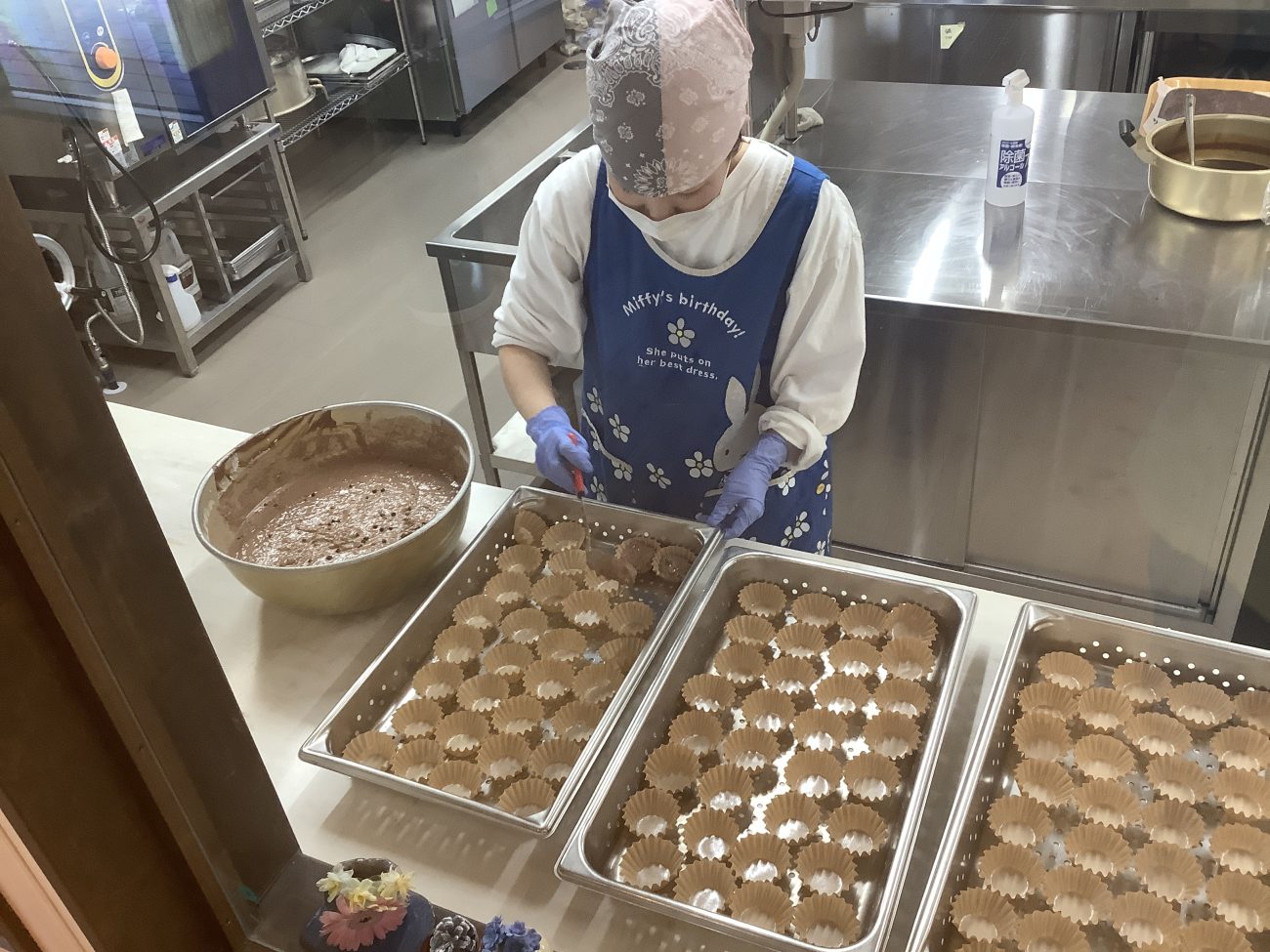 一つ一つ、カップに入れ、愛情たっぷりのチョコ蒸しパンが出来上がりました!