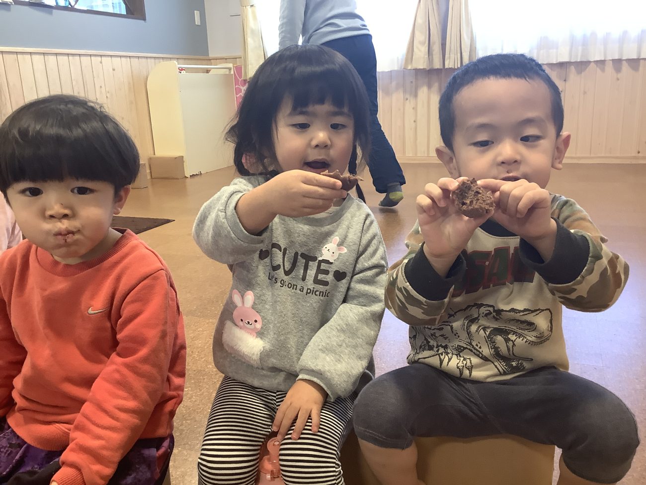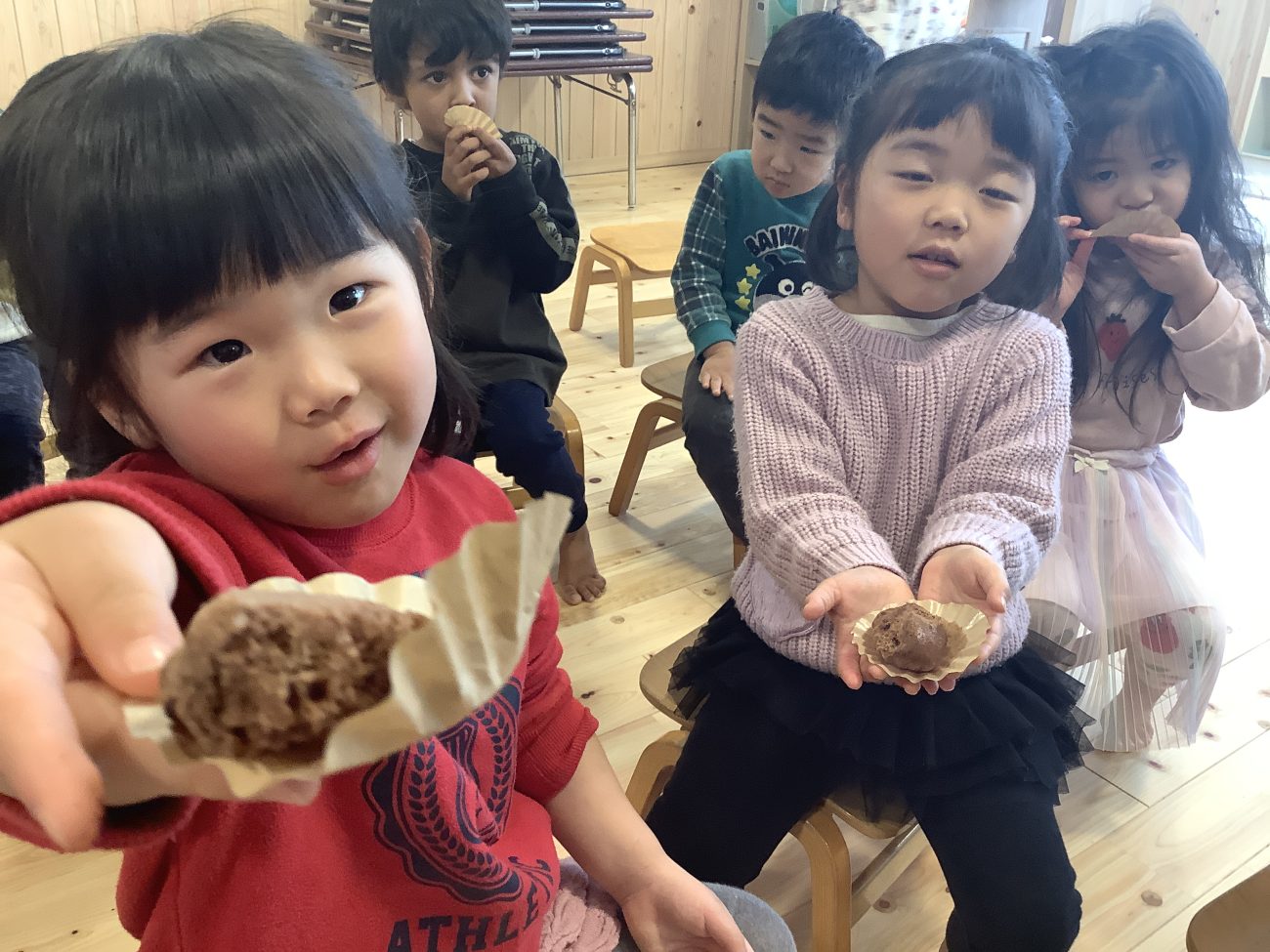 保育園では滅多に出ることのないチョコチップをふんだんに使用したチョコ蒸しパン!