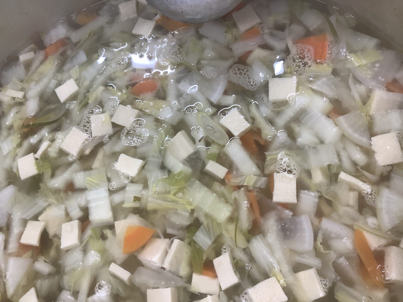 大根、人参、深葱と35ファームの野菜をふんだんに使い、白菜、高野豆腐、小ネギも入りました。