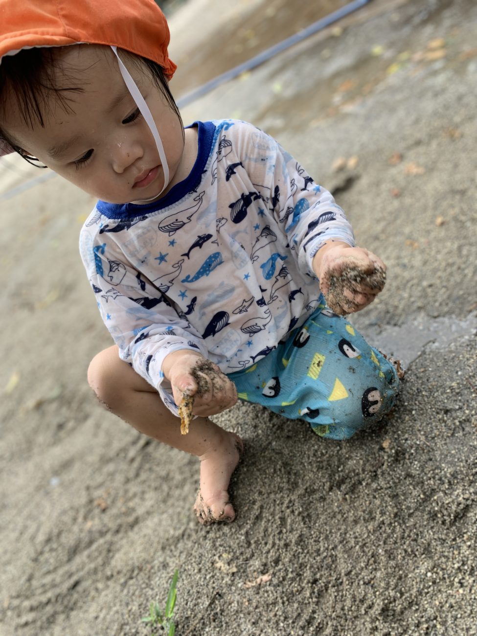 初めは寝返りやハイハイができない子も今では広い園庭でみんな靴を履き、歩いて探索活動を楽しむ姿をよく目にします。草花やビオトープなど、いろいろなものに興味を示し、自分の意思で存分に動くことを楽しんでいます。