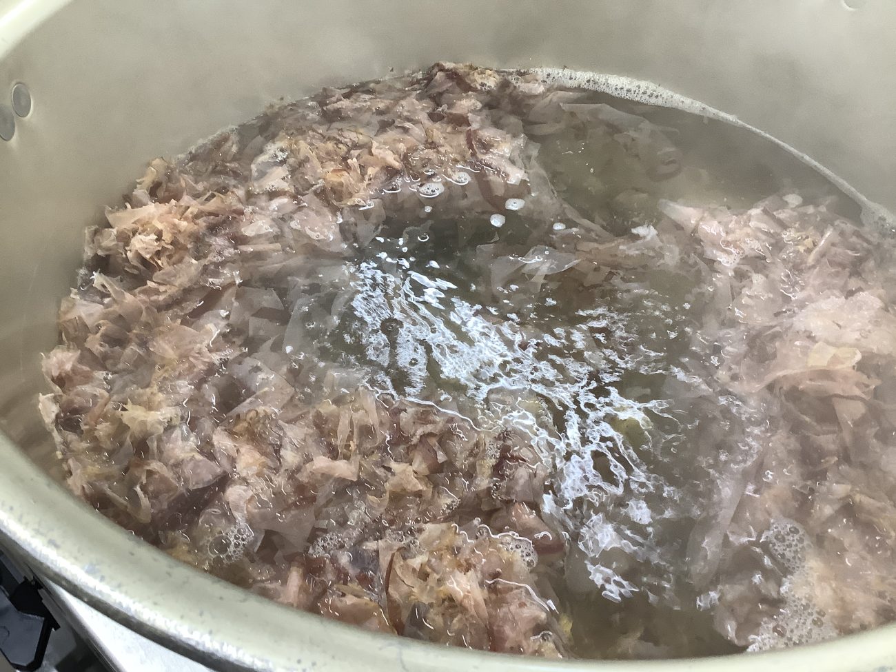 豆乳汁は、中原商店のかつお節と昆布で贅沢にに出汁をとり、野菜を煮込みます。
