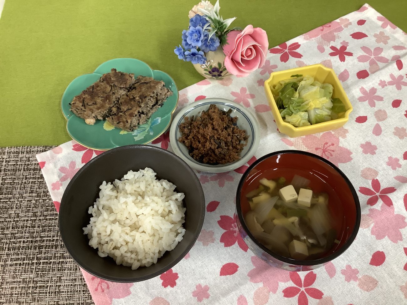 一真からの国産合い挽き肉に、中原商店から届いた国産ひじきがたっぷりと入りました。