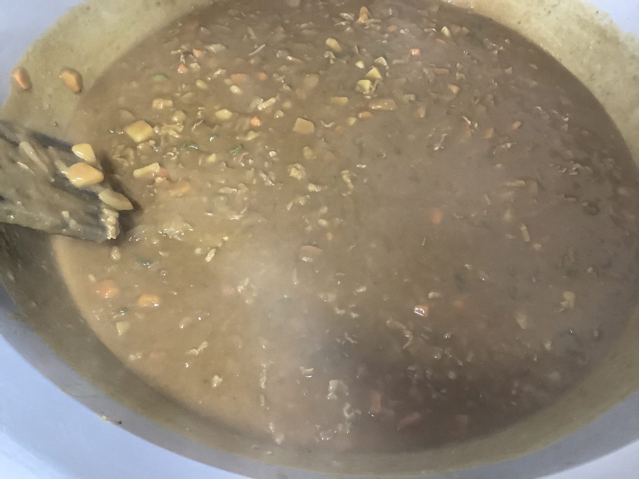 子どもたちにも大人気のポークカレーを今日は黄色いターメリックライスと一緒にいただきます!