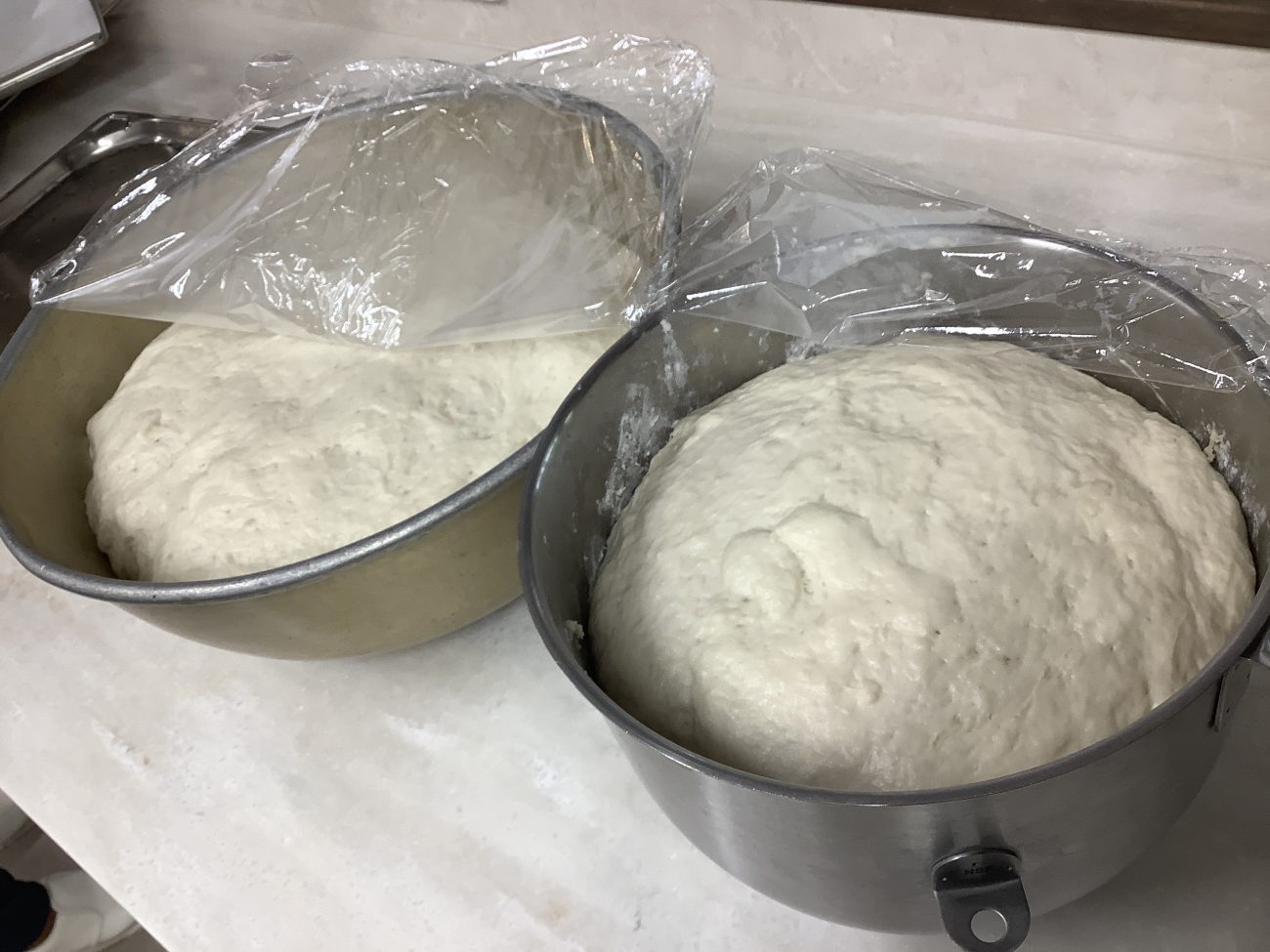 朝一番に生地を仕込みます。半日かけて生地を発酵させてから、パン作りを始めます。