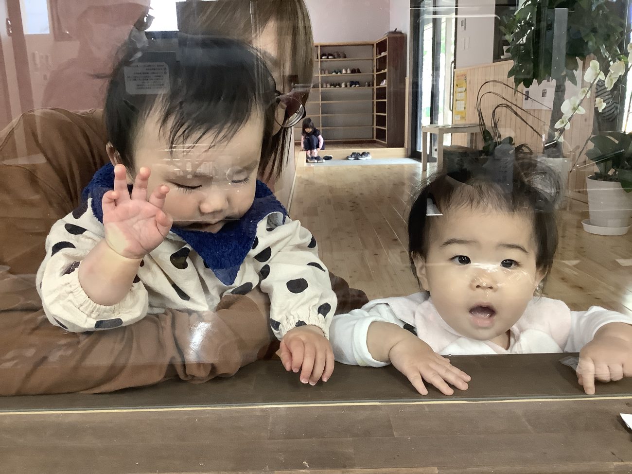 今日のご飯は何かな〜とさくらんぼ組の子どもがのぞきに来ました♪