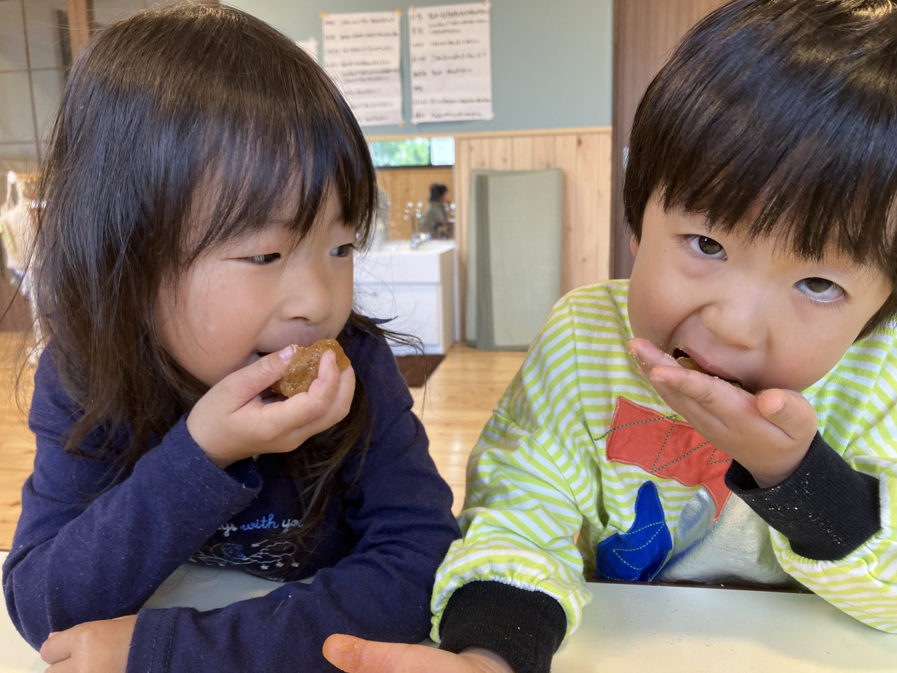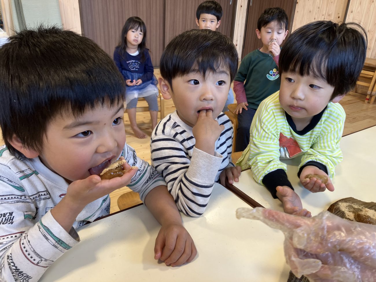 今日は、さくら組ともも組の子どもたちのおやつに澤田農園のあくまきを提供しました。