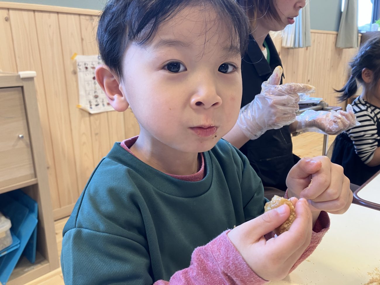 きな粉を付けて一口食べると、ぷるぷる、もちもちとした食感が子どもたちにも人気で好評でした!