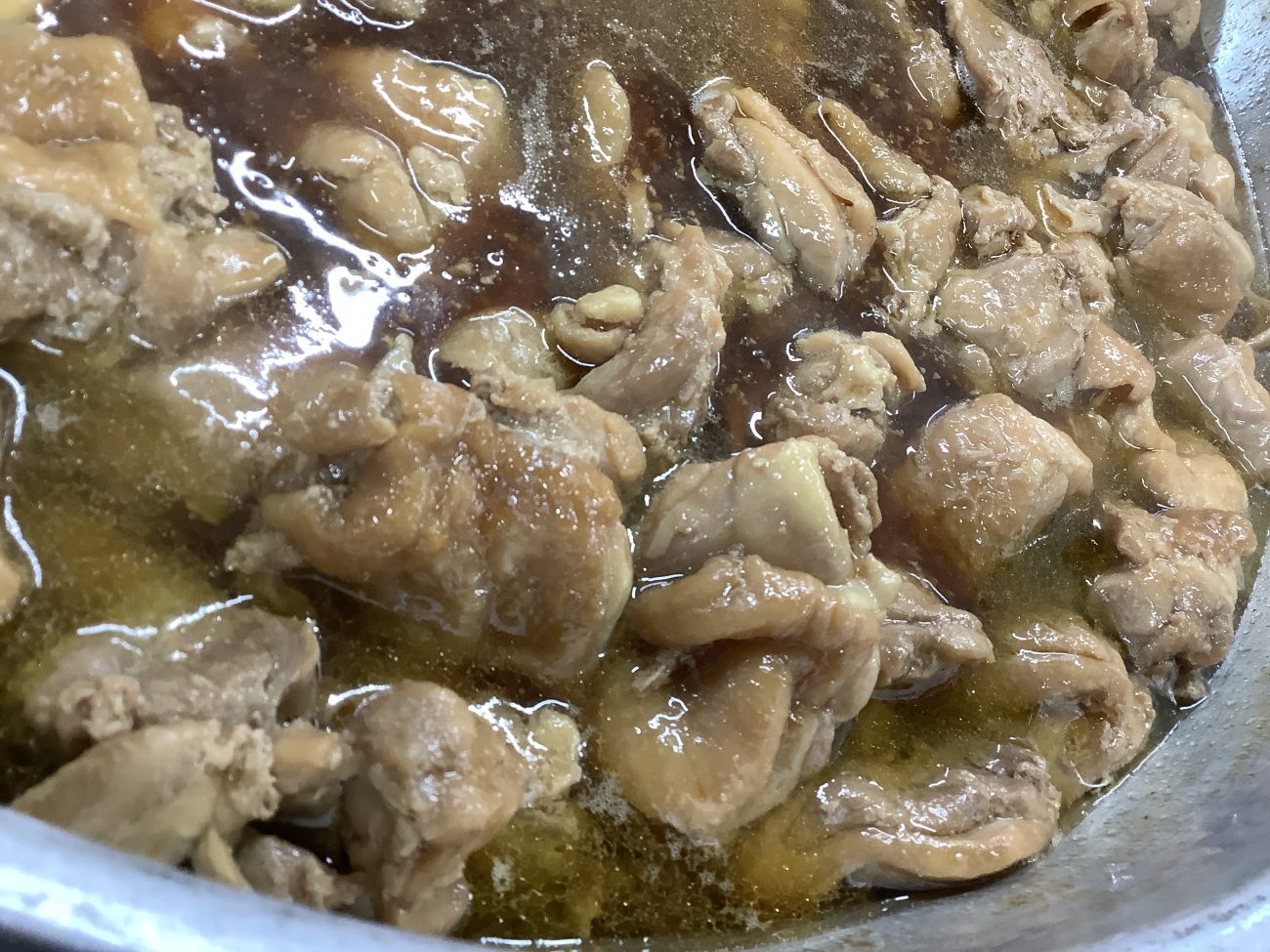 鶏肉と生姜を鍋に重ねていき、きび糖、酒、みりん、濃口醤油で煮込んでいきます。ジューシーな鶏肉と、甘辛い味付けはご飯との相性も抜群で、子どもたちもおかわりをしてくれました!