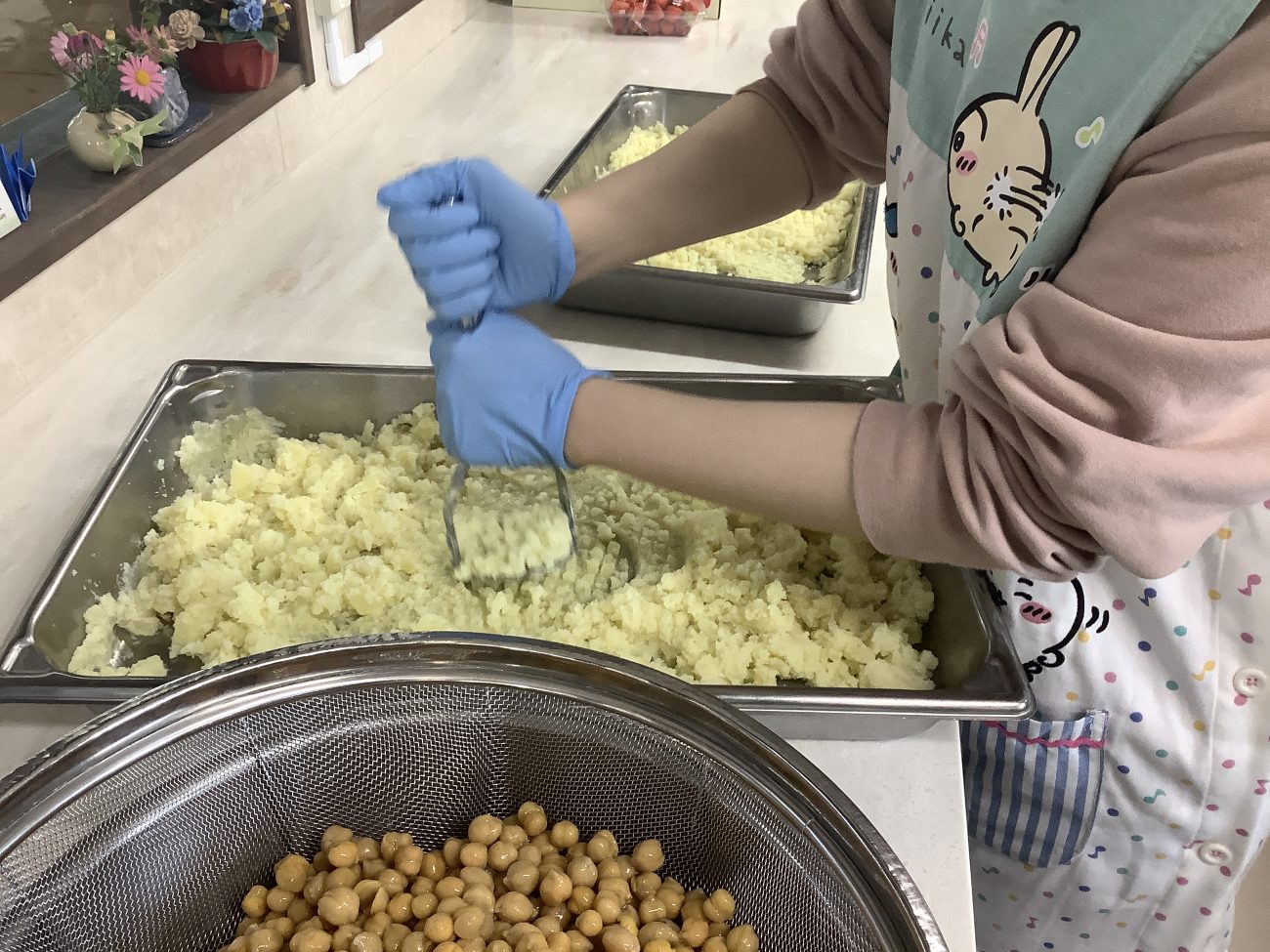 他にも、圧力鍋で柔らかく茹でたひよこ豆、薄くスライスしてスチームにかけたアスパラガスを合わせて豆乳マヨネーズで和えて作ります。