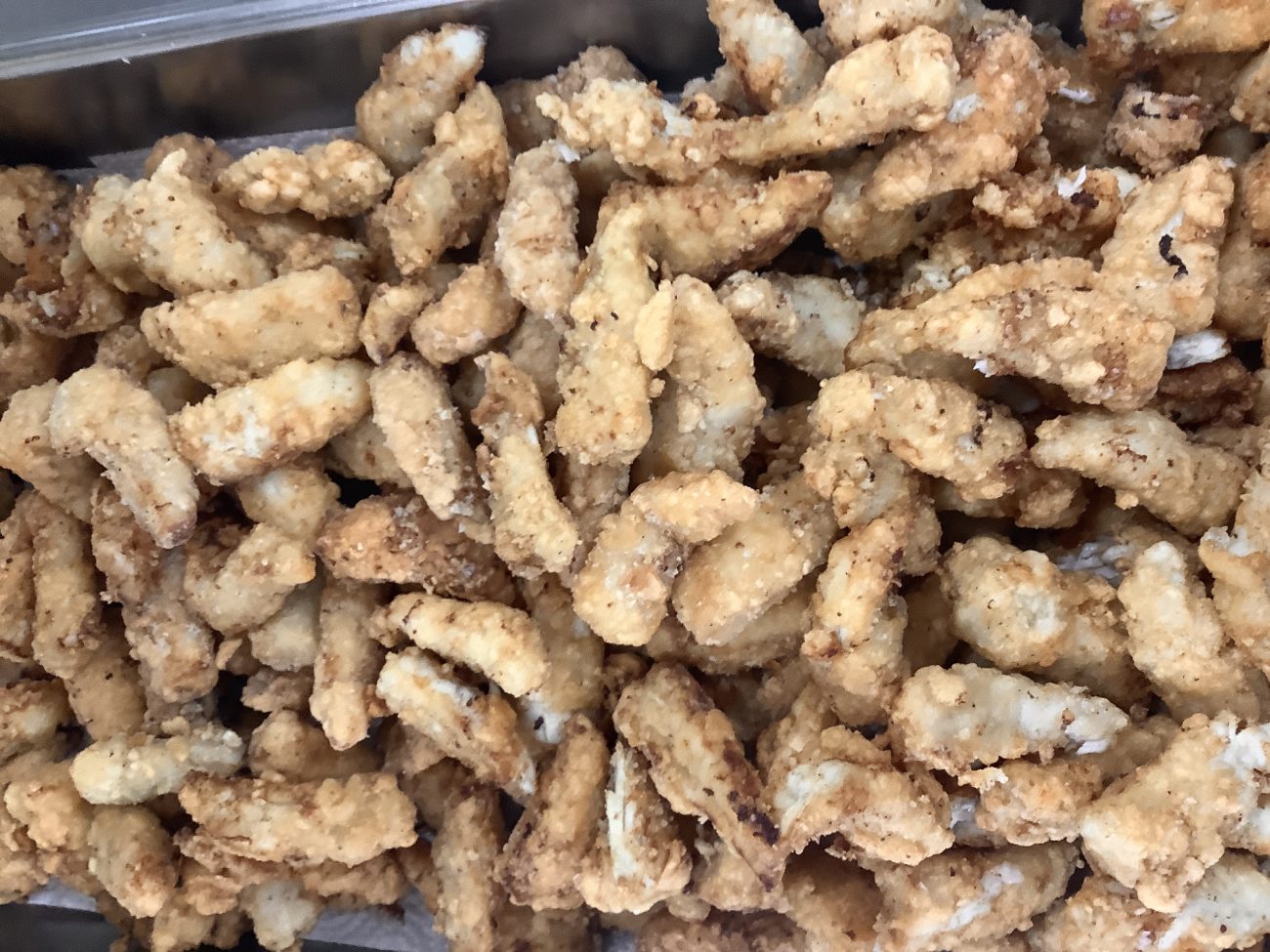 「天身」は、魚の頭の部分から取れる身のことを指します。1匹の魚からわずか2切れしか取ることのできない貴重な部位となっています。今日はカンパチの天身を唐揚げにしました。