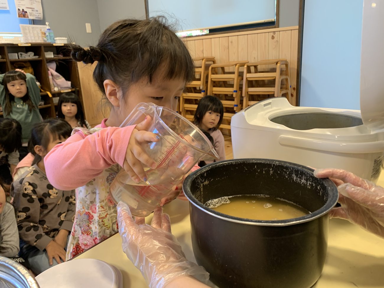ご飯を炊いている途中、良い香りがさくら組いっぱいに広がります。