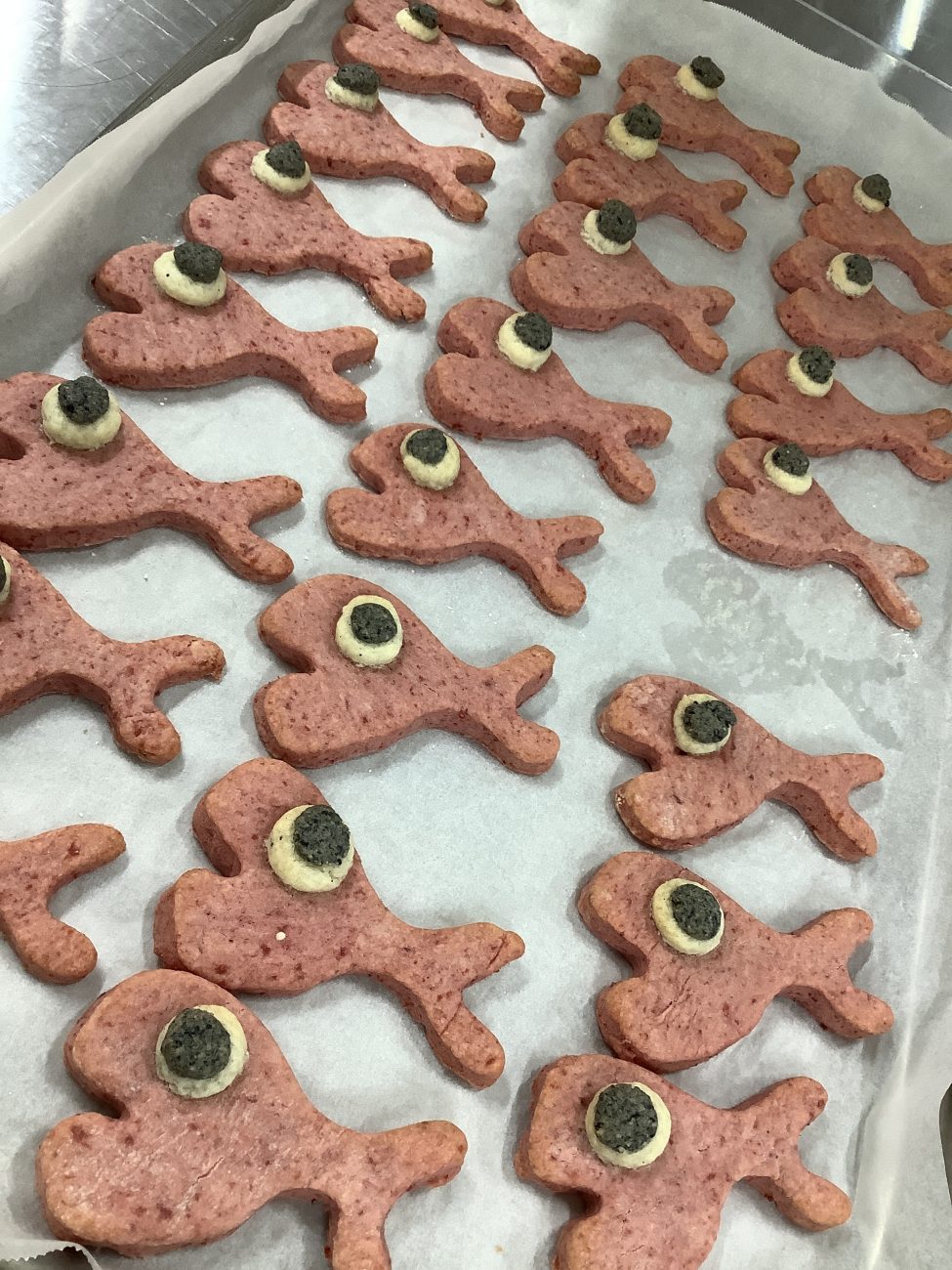 きんぎょの体の赤色は、ペースト状にしたビーツを生地に混ぜることで再現しました。
