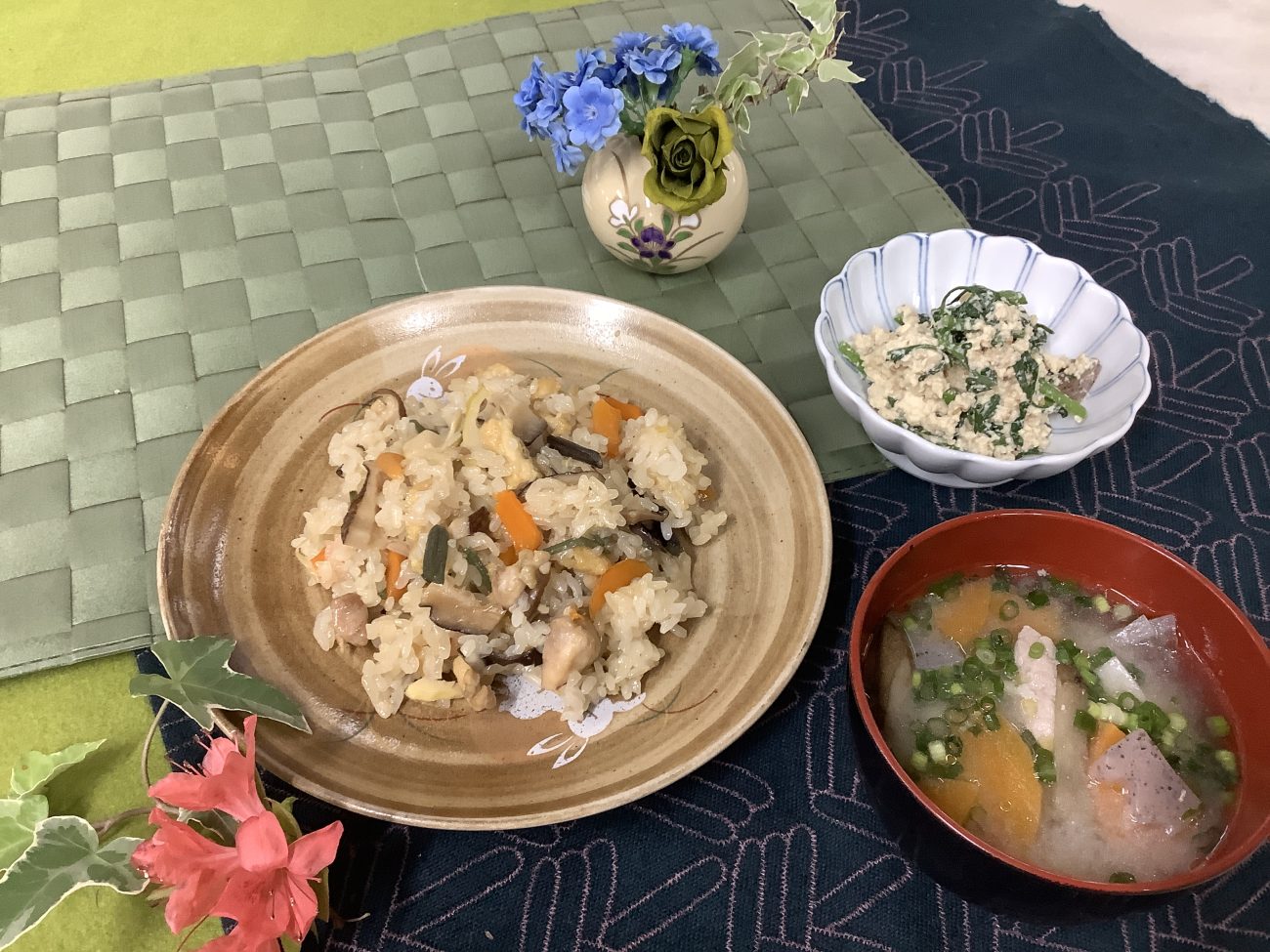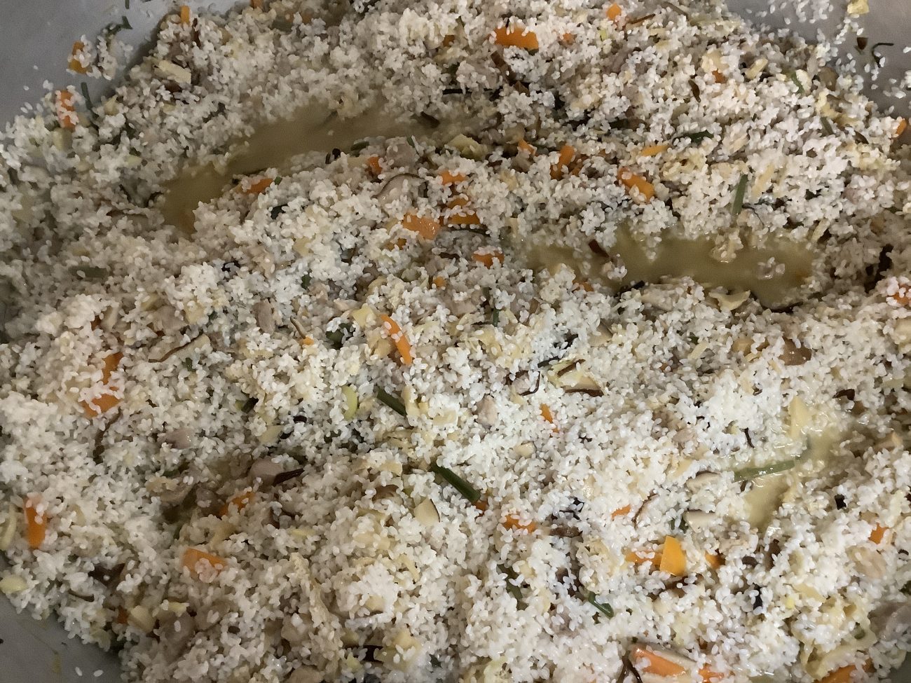今回は色とりどりの山菜や干し椎茸、にんじん、鶏肉などを混ぜ込んだ具沢山のおこわでした。