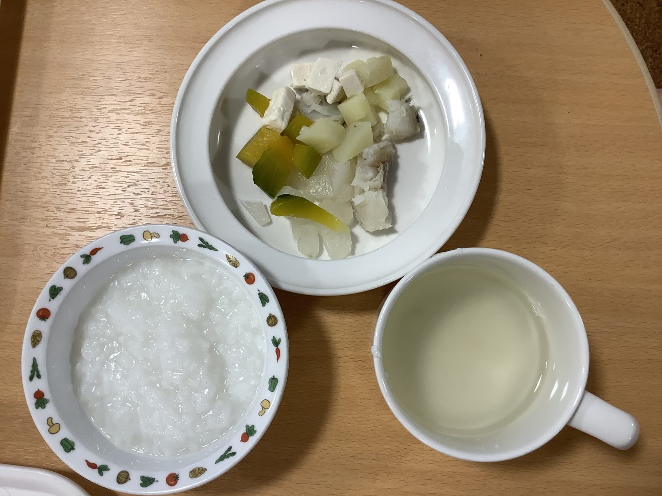 自分たちで給食を盛るさくら、もも組のこどもたちは、餡をかける作業が少し難しそうでしたが、ちゃんとお皿にのせて好きな量を調節してかけられていました。