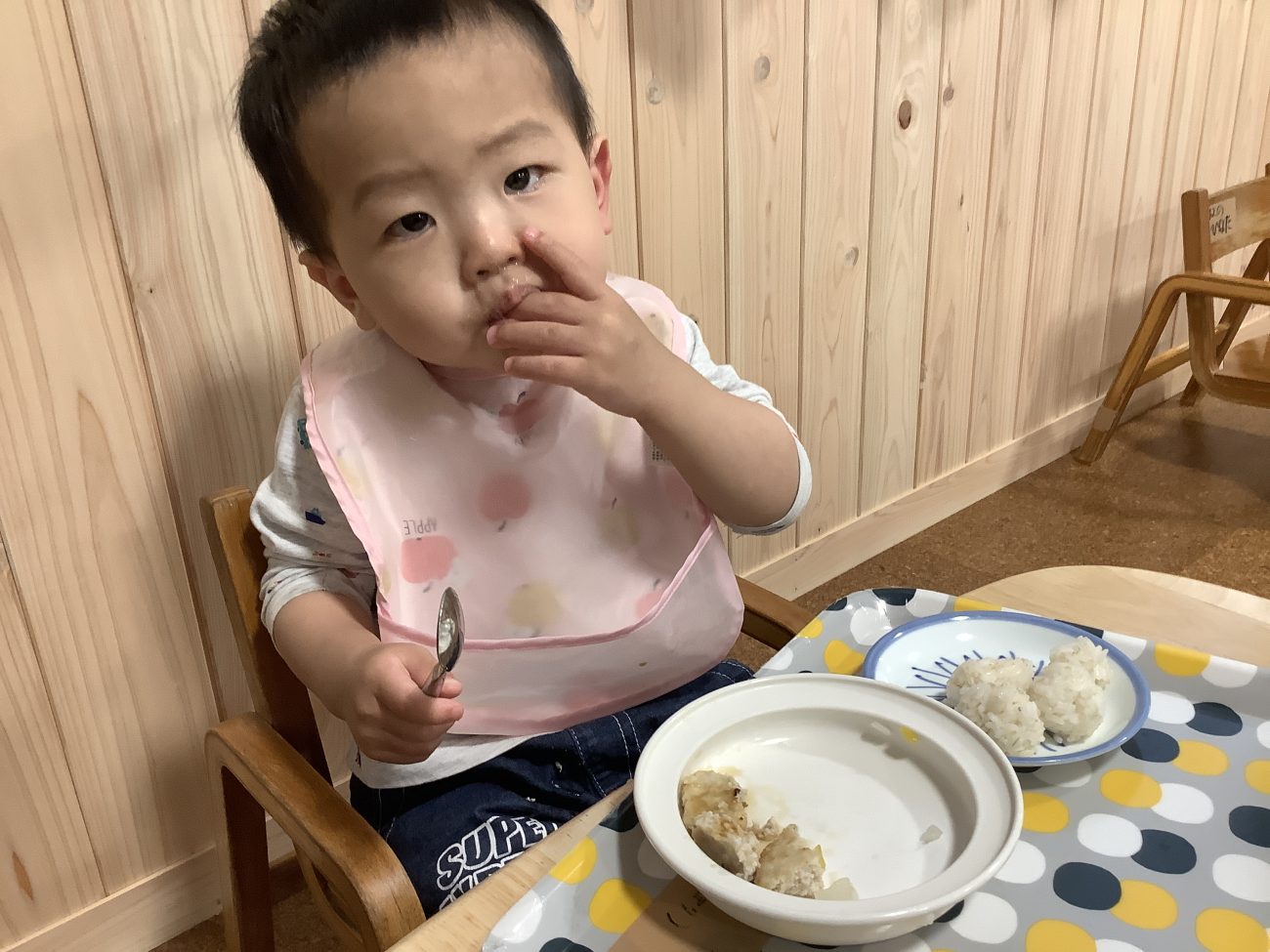 今日も一生懸命、手やスプーンを使って上手に食べている姿がありました。
