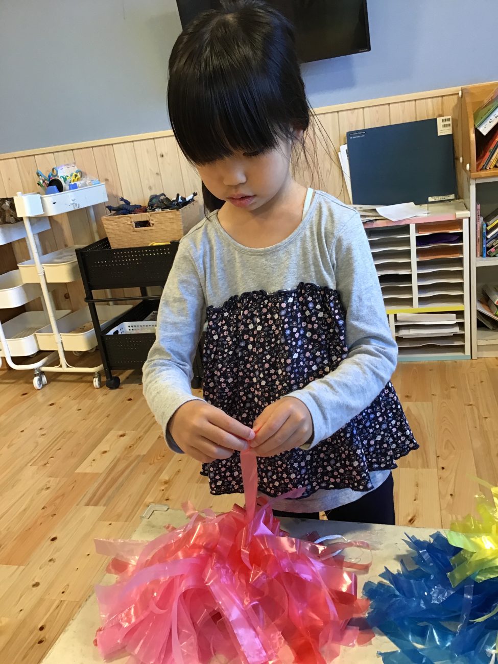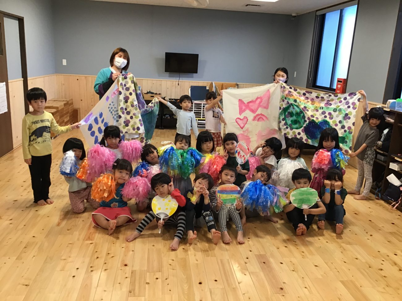 声のみで応援するだけではなく、小物を使いたいということでボンボンや旗、太鼓など話し合いで考えた道具を自分たちで作っていきました。