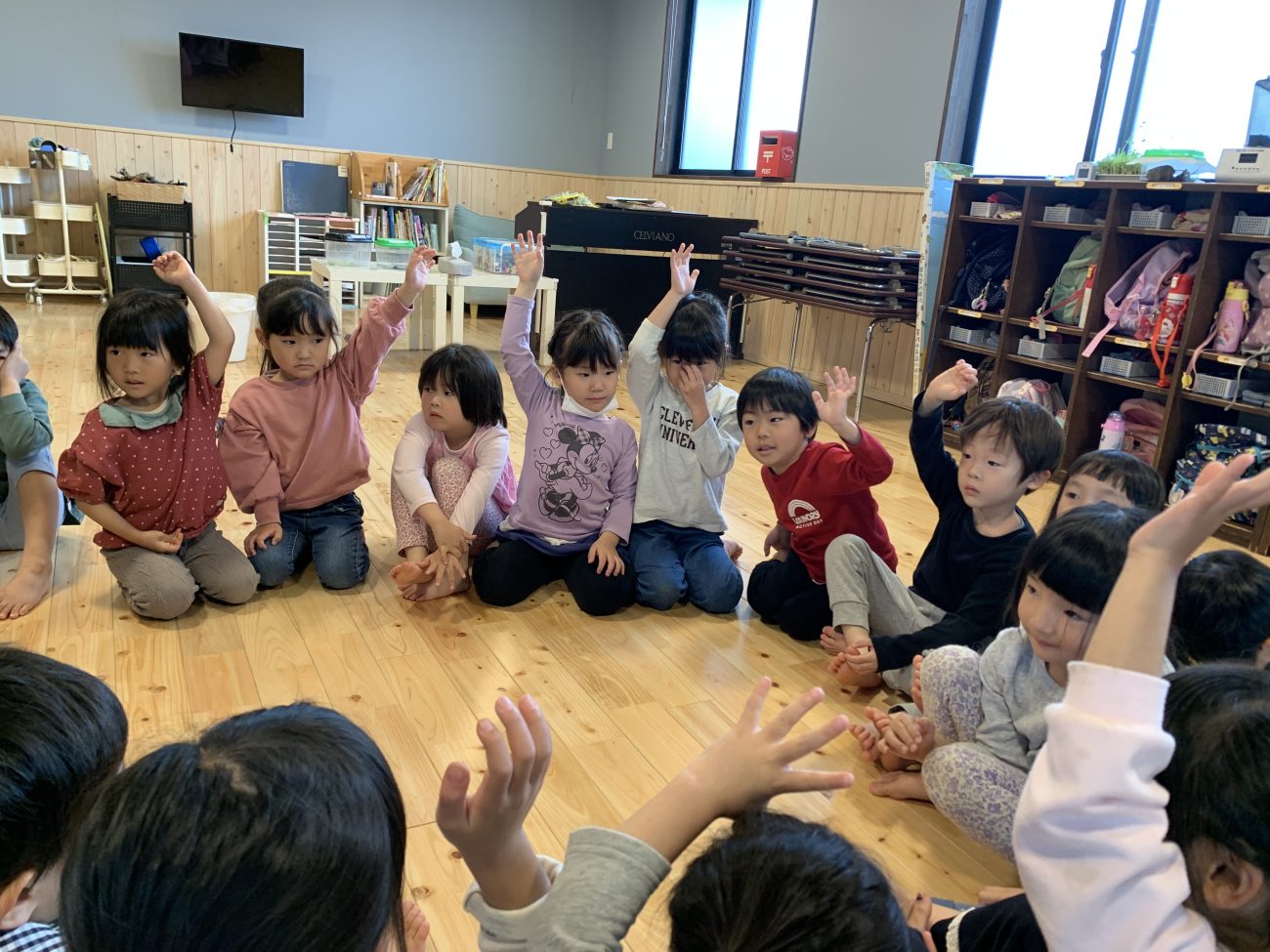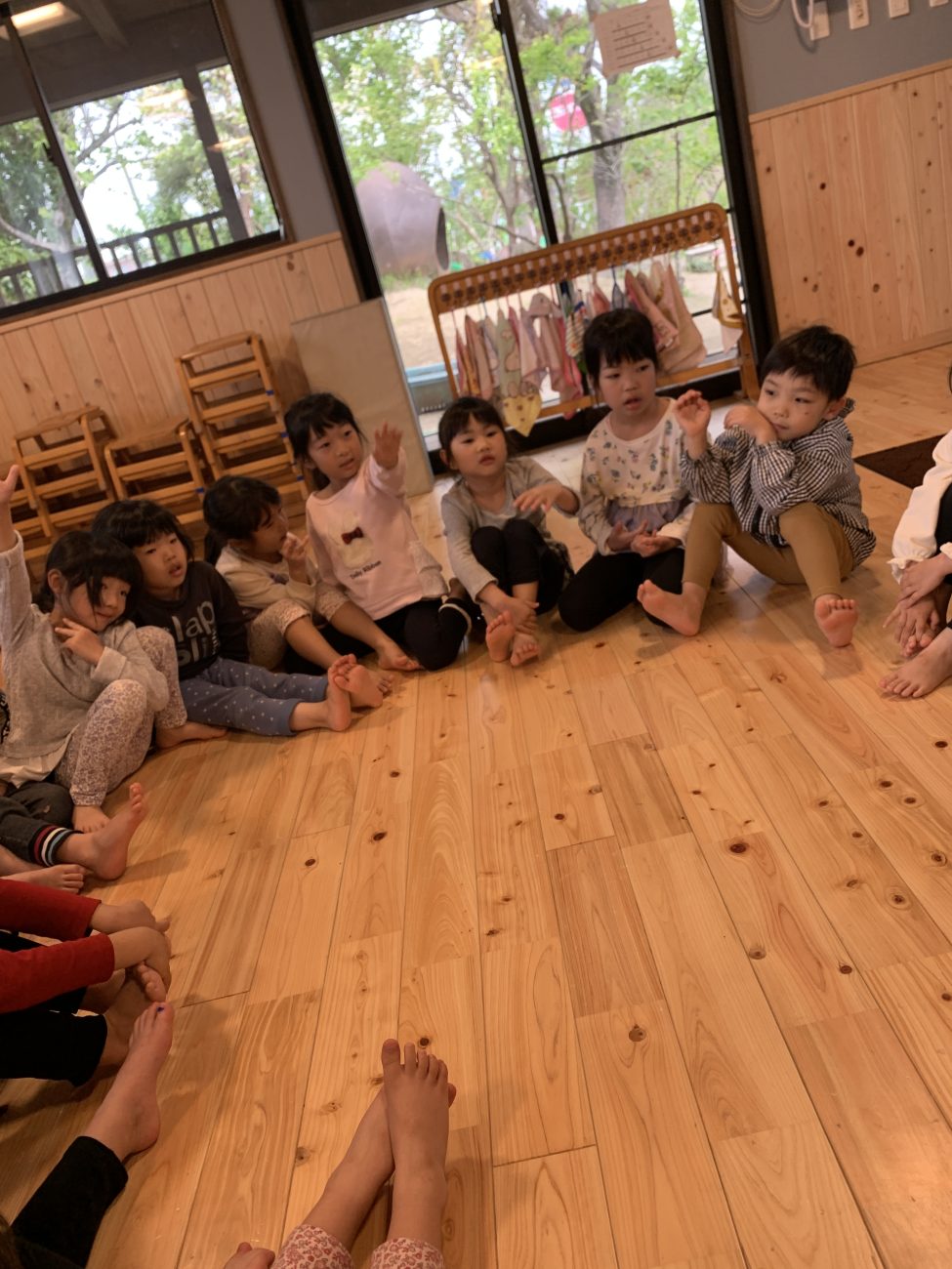 朝のサークルタイムで話し合いを行うと様々な曲名が出てきました。数日に分けて話し合いをし、“残響散歌“に決定!