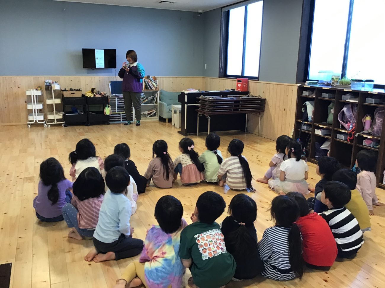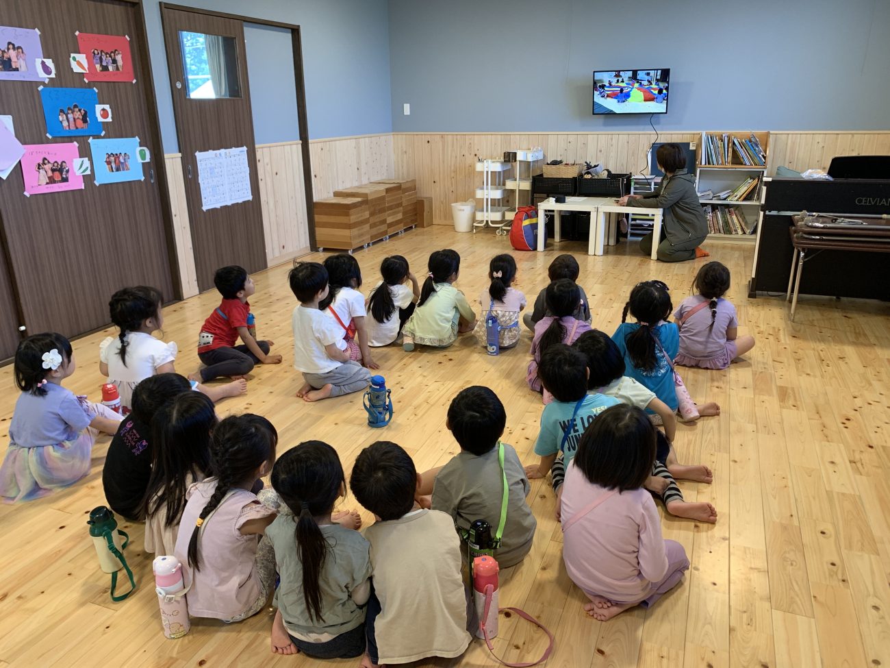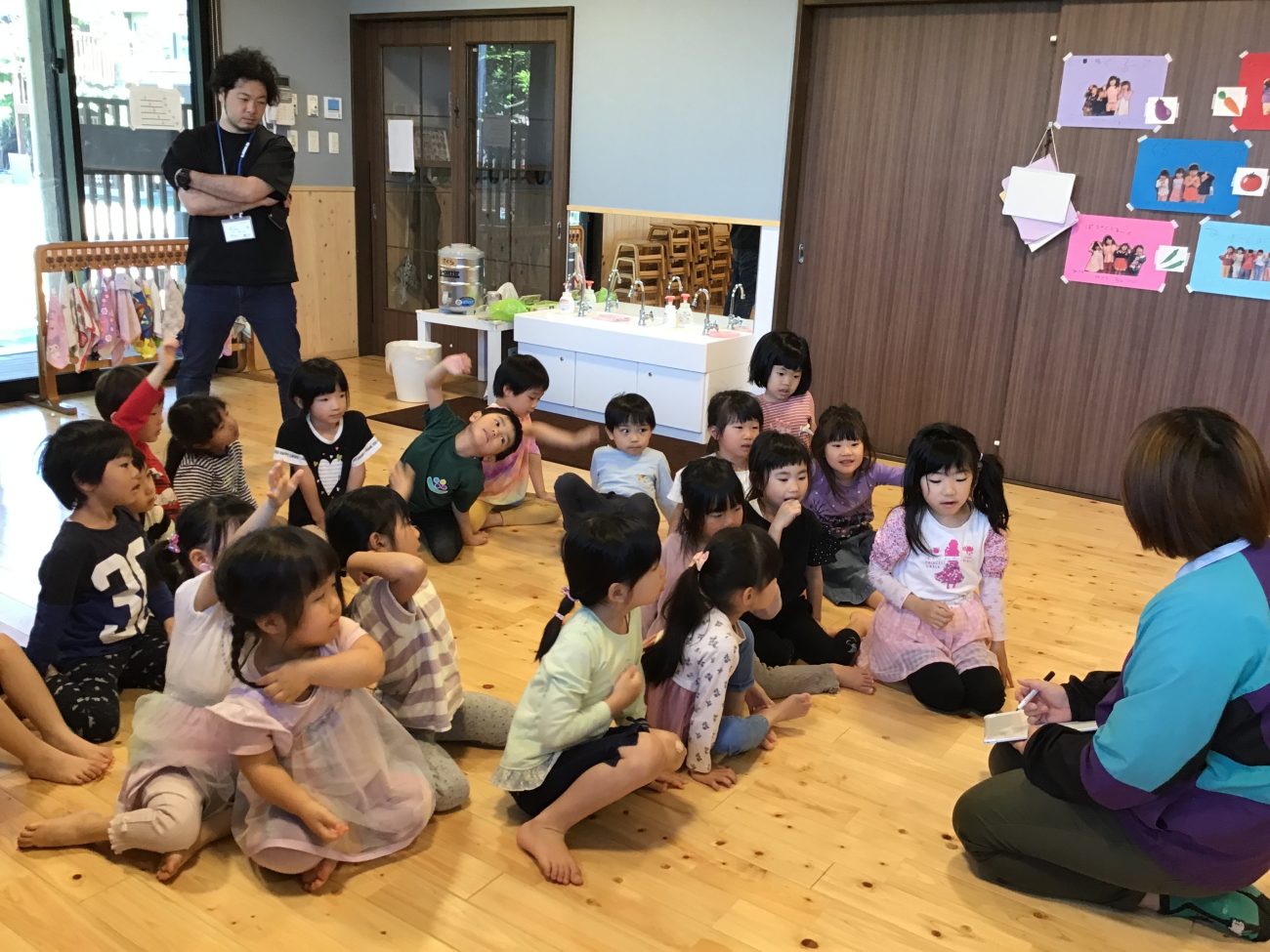 朝のサークルタイムで話し合いを行うと様々な曲名が出てきました。数日に分けて話し合いをし、残響散歌“に決定!