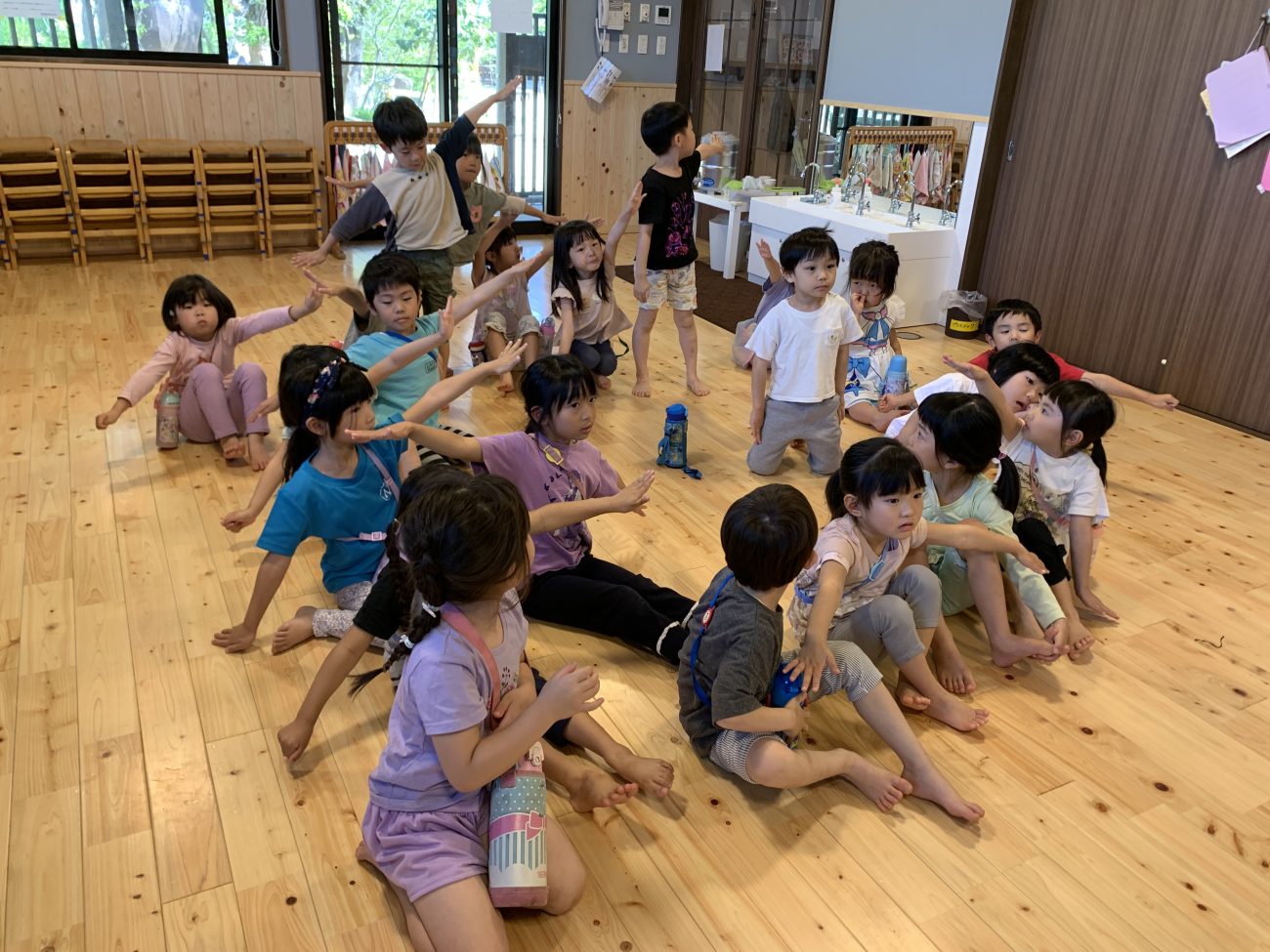 動きが決まり、早速練習がスタートしました。難しい動きは協力しながら、互いにタイミングを合わせるのに苦戦する子ども達。