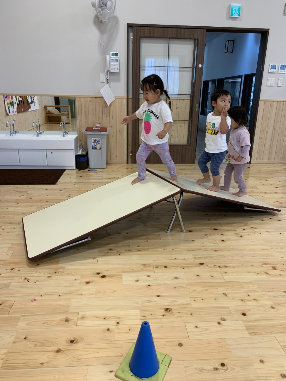 普段の運動遊びでも子ども達が密集する程、人気!保育の中で取り入れる際も・友だちを押さない・立ち止まらない、といったルールを伝えながら行っています。