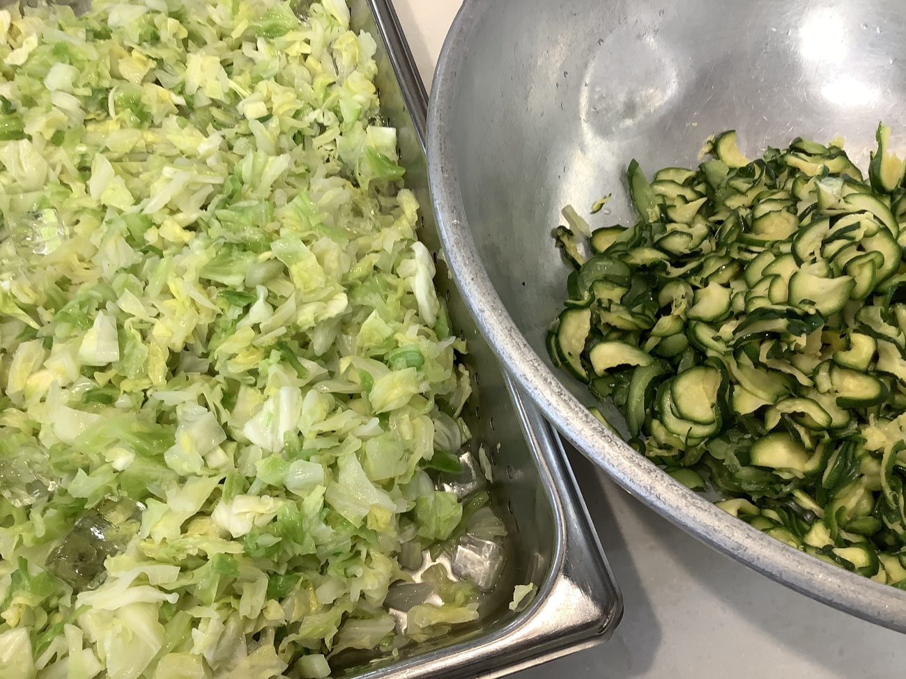 生のままでも食べられるきゅうりとズッキーニはスチームにかけて、食感を残したまま加熱をしています。