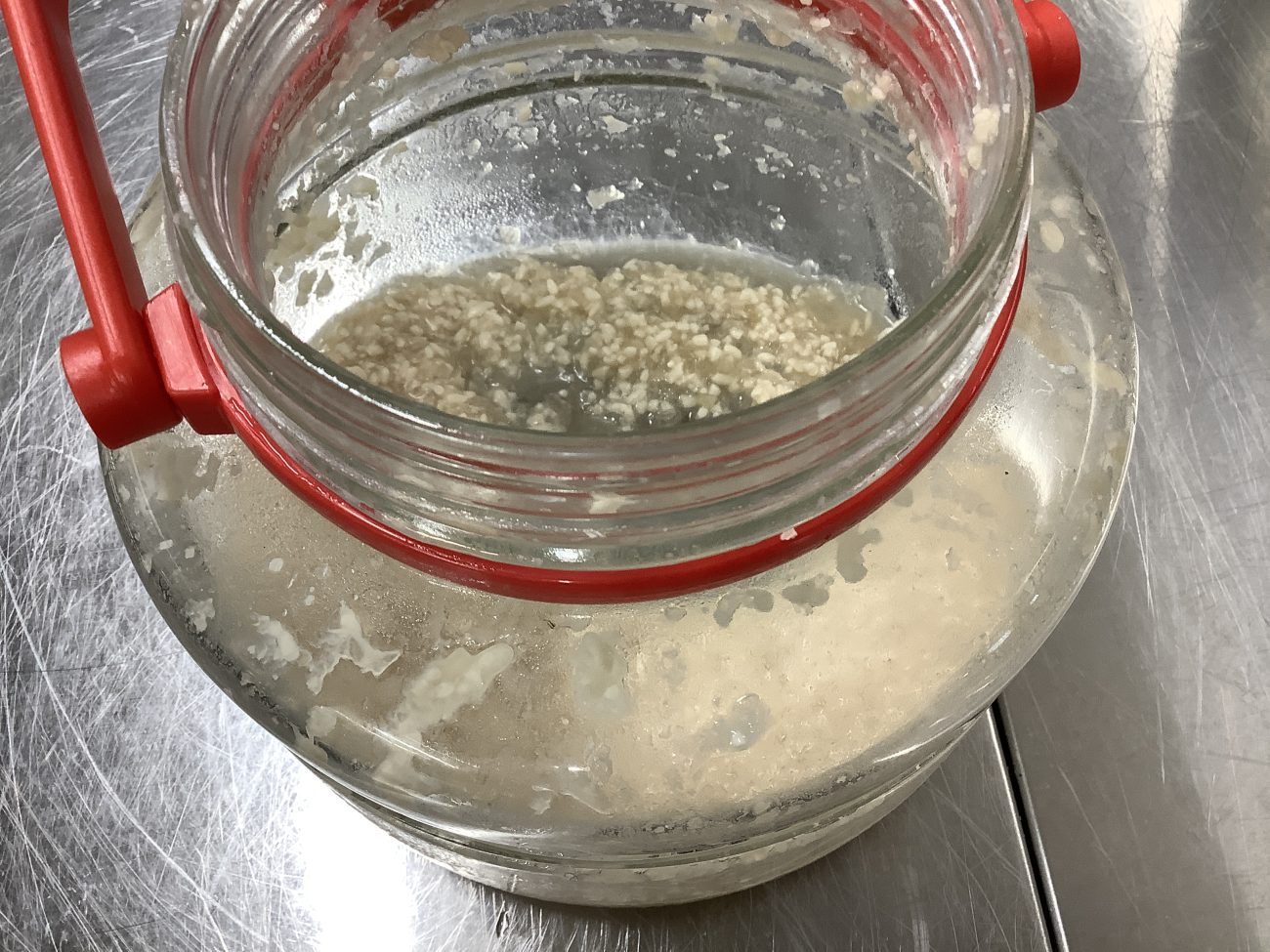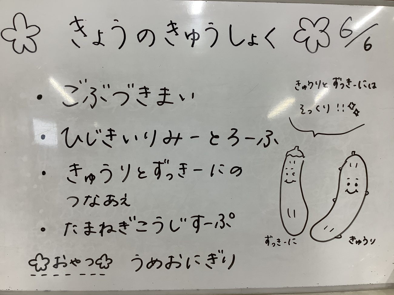 かつお節で出汁を取り、玉ねぎ・にんじん・じゃがいも・圧力鍋で柔らかく茹でたひよこ豆を煮込んでいます。味付けには給食室で手作りしている玉ねぎ麹を加えました。
