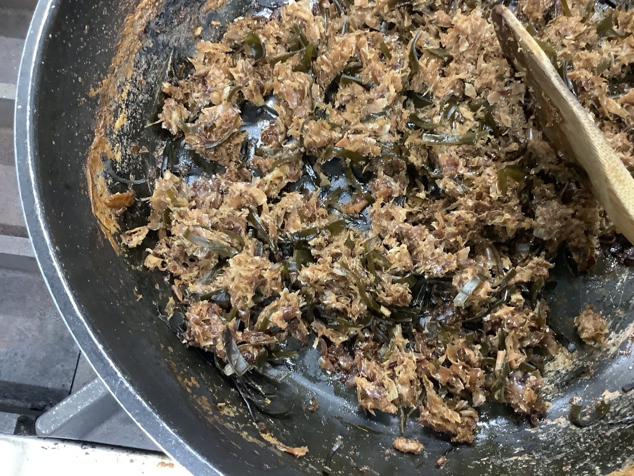 また、出汁がらのかつお節と昆布も濃口醤油とみりんで味付けをしてふりかけにしています。