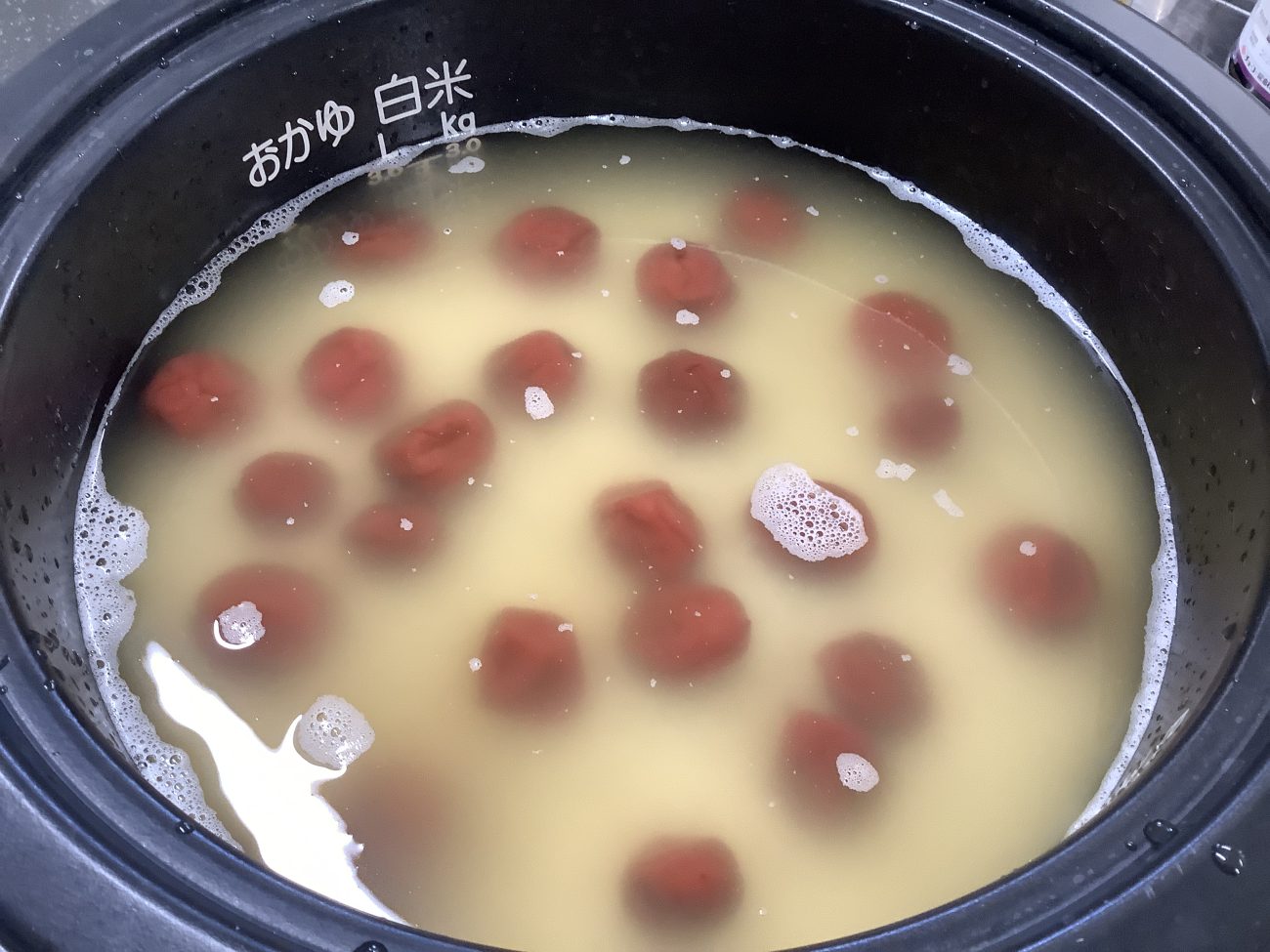 出汁の旨味と梅干しの酸っぱさが効いていて、さっぱりと食べられます。ほんのり赤く色づいたご飯が、見た目も可愛らしく仕上がりました!