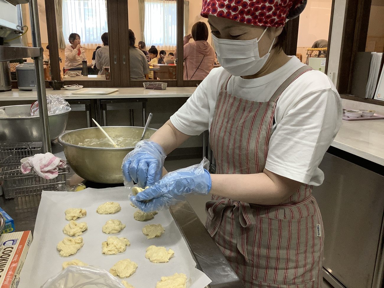 今日のおやつは、栄養士実習生が考案したバナナ焼きドーナツでした。
