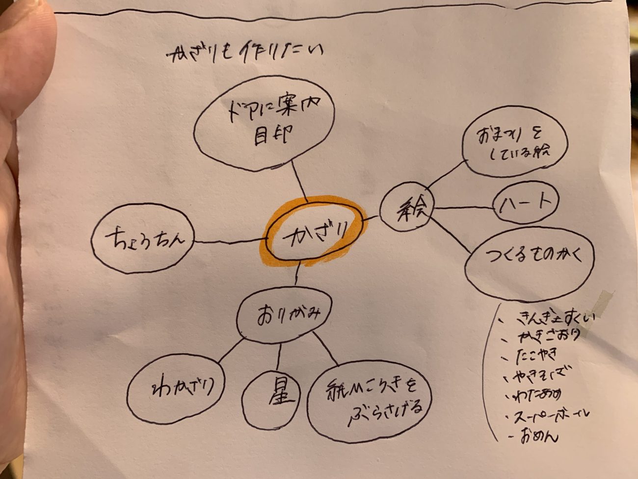 話し合いの最中で【お金】【案内】【飾り】など、夏祭りを想像して必要なものを次々と意見を出してくれました。