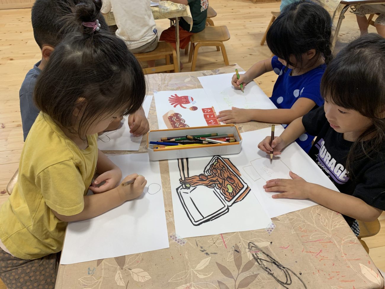 以上の2点を踏まえて、夏祭りごっこの準備をしながら物事を想像する力を養いつつ、製作(ハサミやノリの使い方等)や数の概念を学ぶ事が出来るのではないかと考えました。