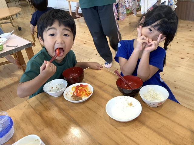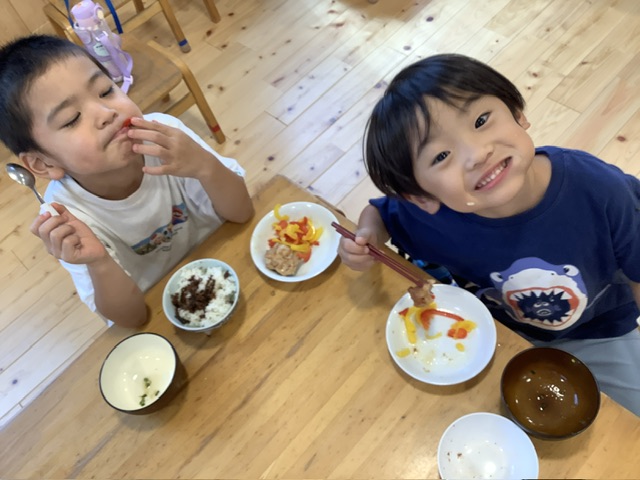 スチームにかけることでパプリカの旨味が凝縮し、苦味もなく、野菜が苦手な子どもも美味しい!!と食べてくれましたよ♪ もも組の子どもたちは野菜が好きな子どもが多く、たくさんおかわりにきてくれました。