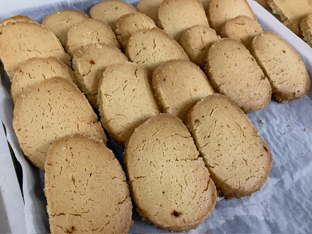 ディアマンクッキーは、クッキーの表面にグラニュー糖をつけて焼いたものになります。表面のグラニュー糖がダイヤモンド(フランス語でディアマン)のようにキラキラしているようにみえるのでディアマンクッキーと呼ばれています。