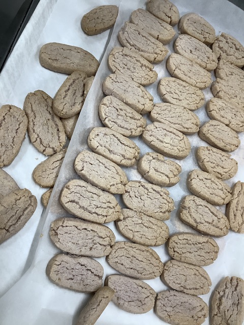 今日のおやつは、紫芋パウダーを練り込んだ手作りちんすこうでした。