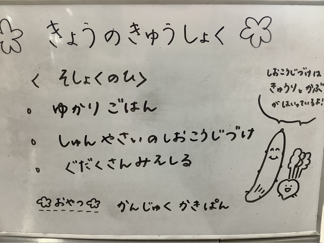 本日の旬野菜の塩麹漬けには、カブときゅうりを使用し、給食室手作りの塩麹で和えました。