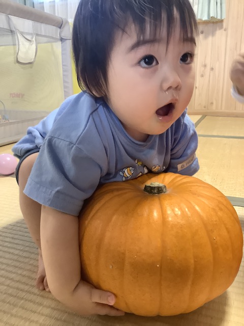 さくらんぼ組の子ども達に見せると、不思議そうに見つめる子、コンコンペチペチと叩いてみる子、持ち上げようとする子などなど、様々な子ども達の姿を見ることができましたよ♪