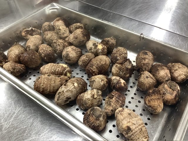35ファームの里芋を使用しました。蒸し煮したごぼう、じゃがいも、にんじん、糸こんにゃく、車麩、一真の豚肉が入りました。