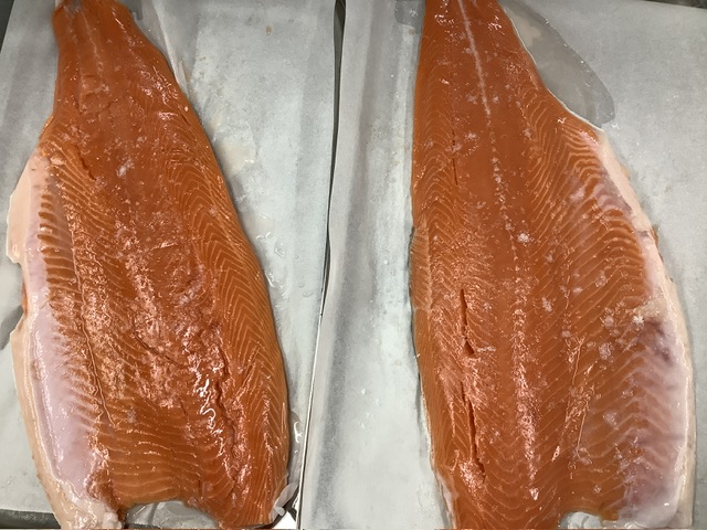 山口水産から大きな半身の鮭が届きました。酒、塩を振って焼きます。