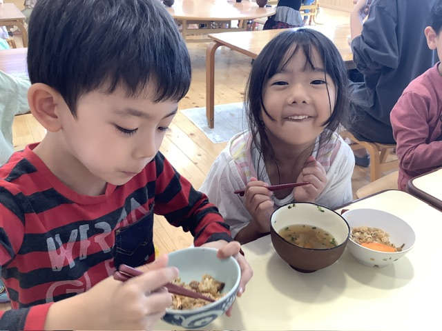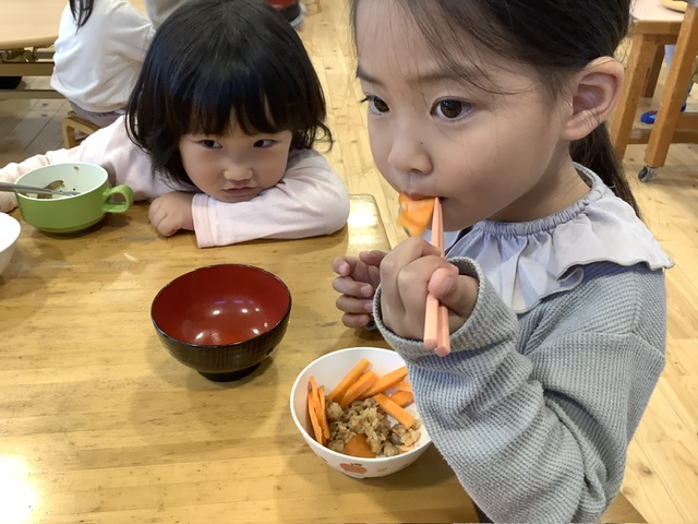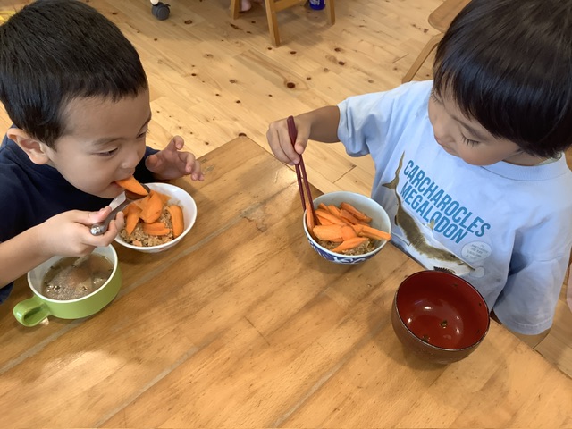 ↓人参の味噌漬けをご飯にたくさんのせ、食べていました!さすが『にしきっこ』⭐︎