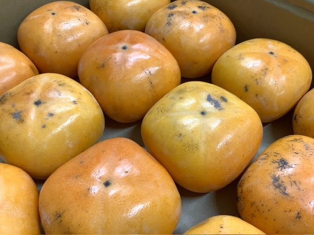 今日のおやつは、和歌山県産の大きくて色鮮やかな柿でした。