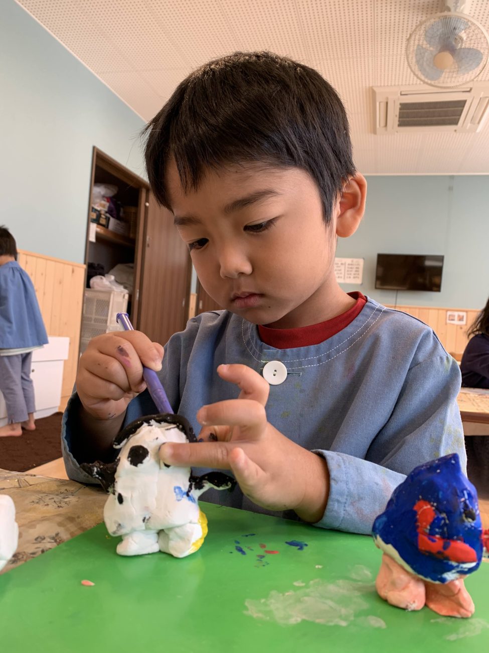 イメージを膨らませながら生き物を描いたり、作ったりと自分なり