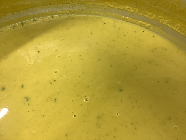 そこに豆乳・生クリーム・洋風だしを加えて、バターと小麦粉を炒めたルーでとろみを付けて出来上がりです。