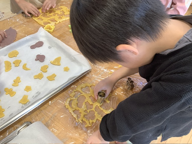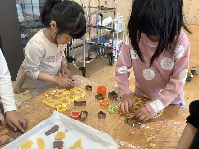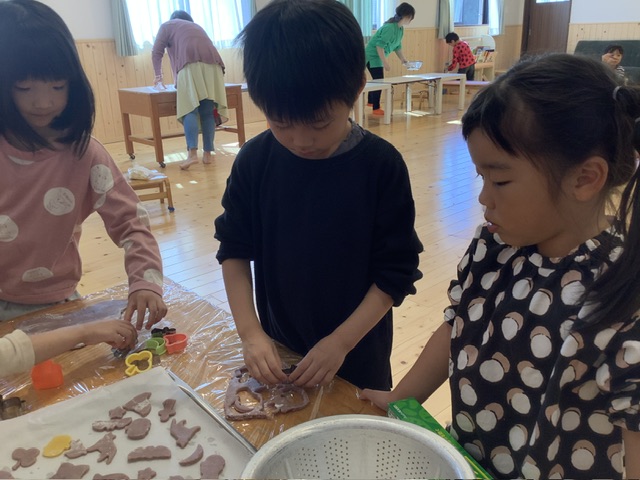 さくら組ともも組の子どもたちが、クッキーの型抜きをお手伝いしてくれました。