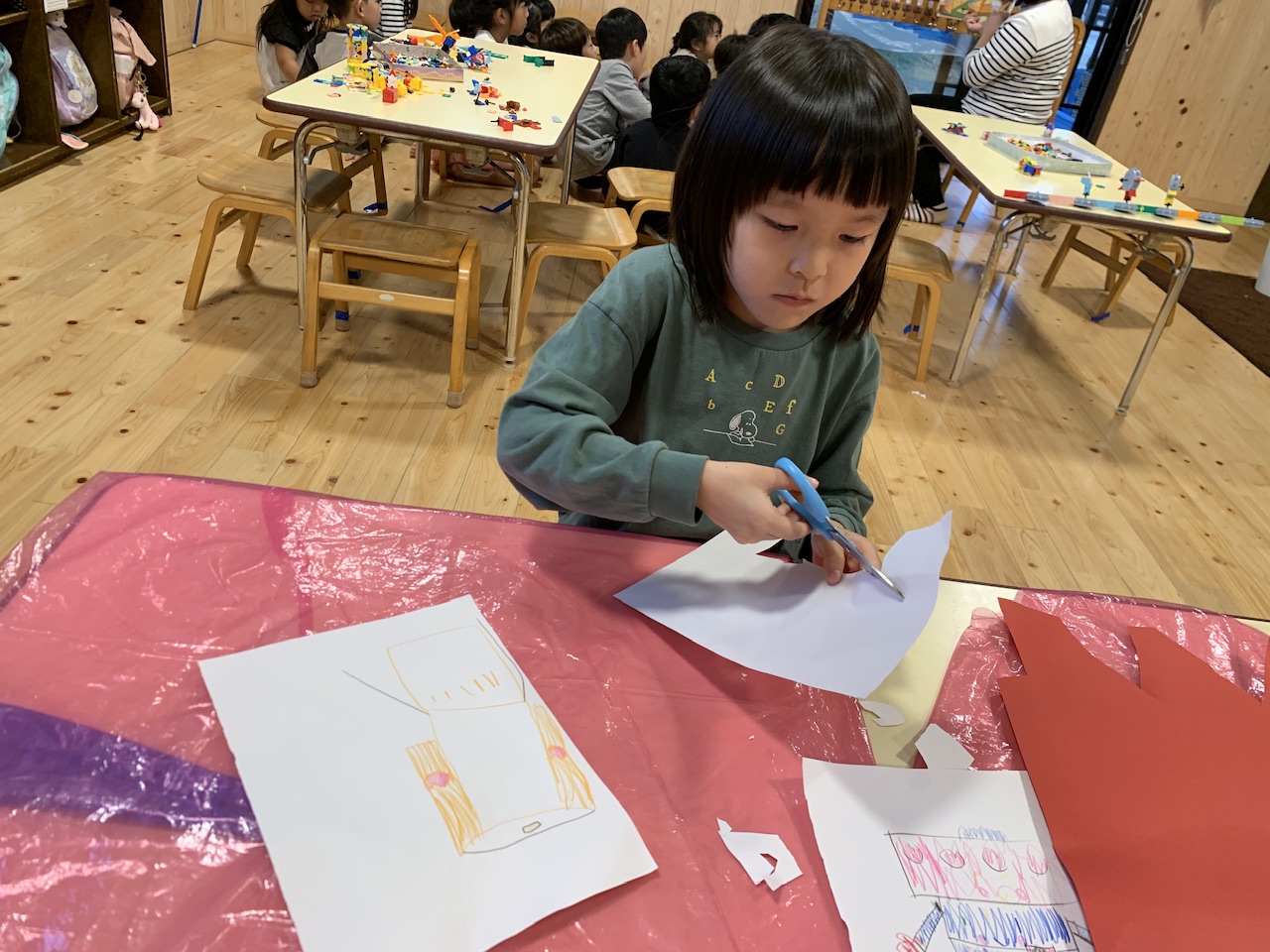 今回のフェスティバルでは「ディズニーランド」の展示と「手話・ダンス」の発表をすることが決まりました。サークルタイムでは、子ども達が主体となってディズニーランドをどのように作るか、どうすればたくさんのお客さんに見に来てもらえるのかを考えました。その中で、意見のすれ違いや自分の意見が通らない場面もたくさんあり、なかなか話し合いが進まないことも・・・。