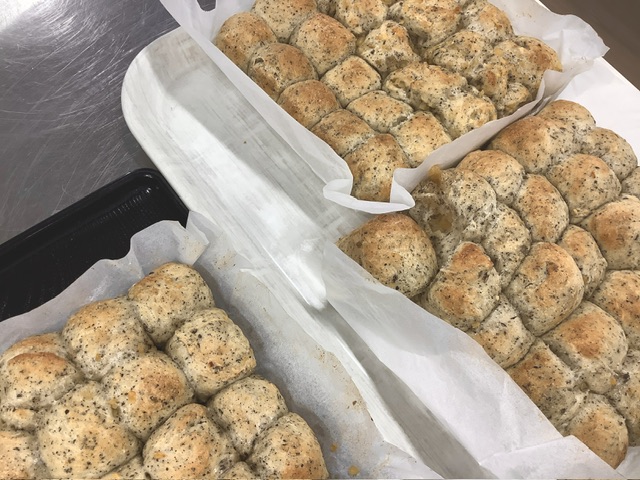 アールグレイの紅茶葉と、小さく角切りにしコンポートにしたりんごを加え、ちぎりパンを作りました。紅茶の香りと、りんごの甘さが相性抜群!!