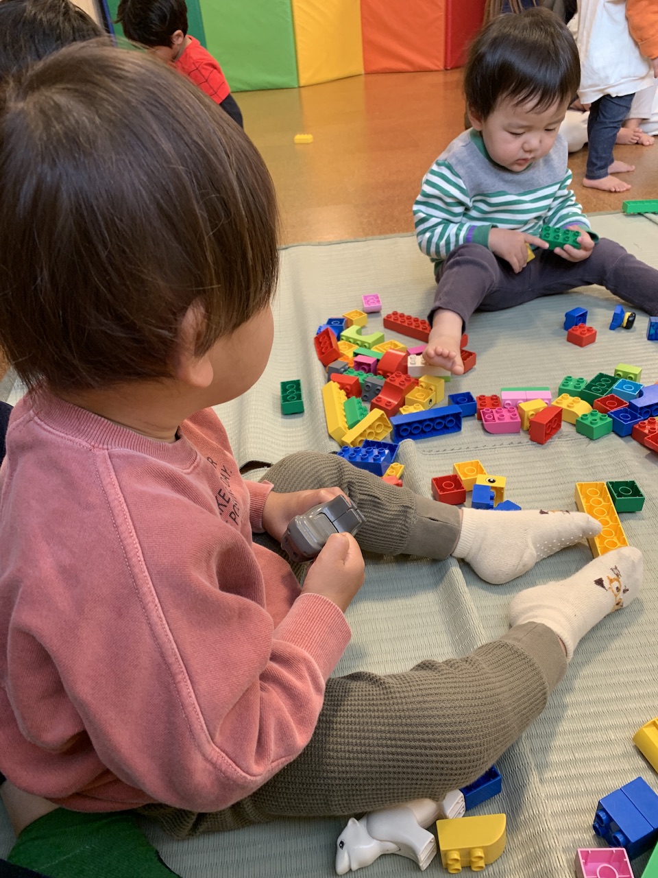 朝や夕方の自由遊びでブロックやままごとなどで遊ぶ機会があります。