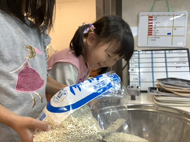 1日目となる今日は、麦と米を混ぜ合わせて水につけ、一晩寝かせるところから始まりました。