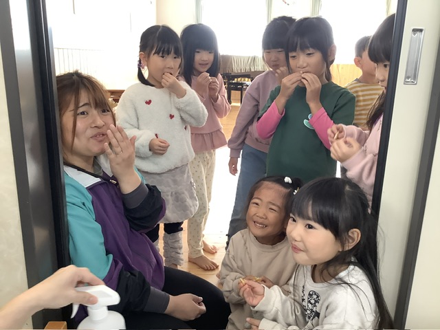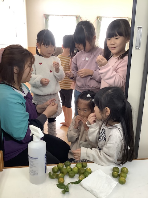 子どもたちに枝からもぎ取ってもらい食べてもらいましたよ!