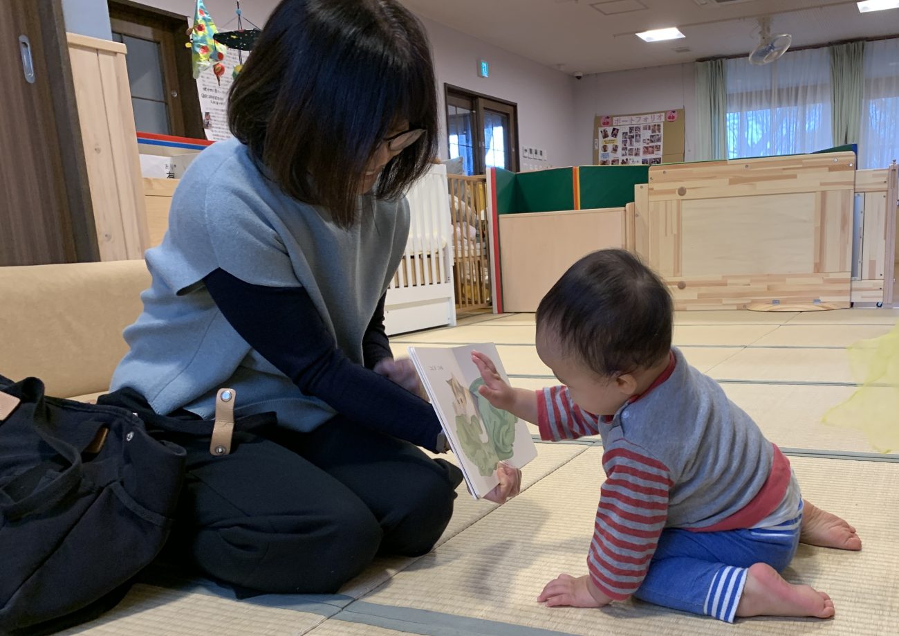 喃語や言葉の獲得が著しいこの乳幼児期に様々な絵本を通して、たくさんの興味に沿った絵本や季節・行事を感じられる絵本の読み聞かせの時間を設けていきたいと思います。        文責:大迫