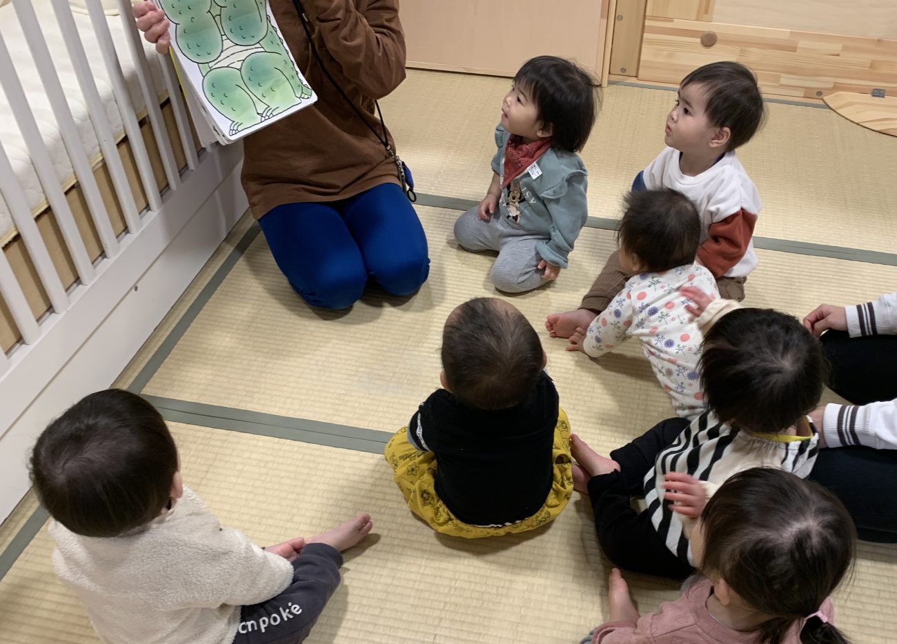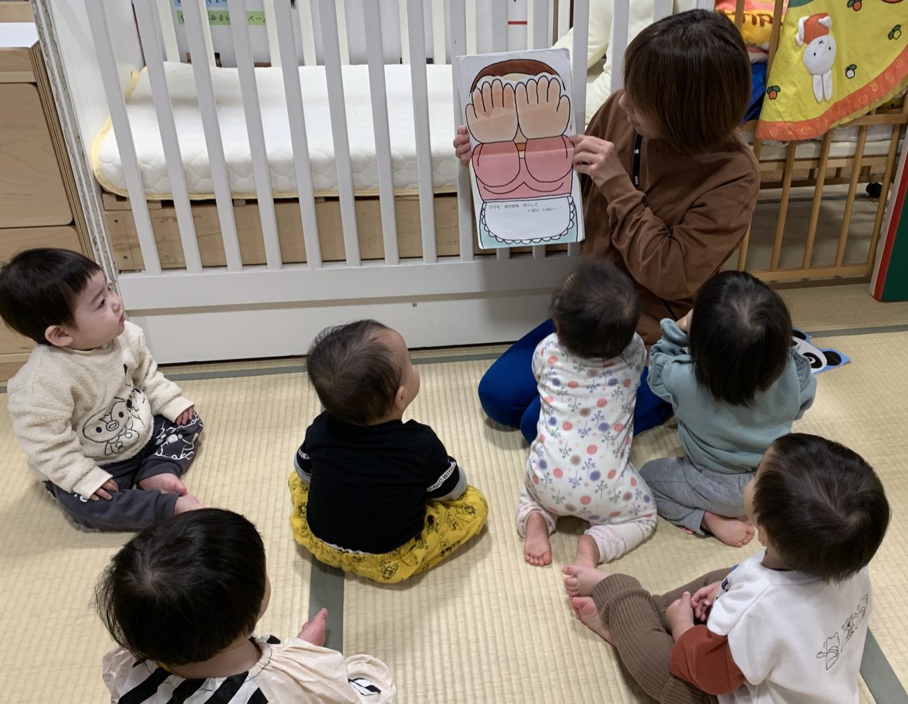 さくらんぼ組0歳児の子ども達は絵本の時間が大好き!